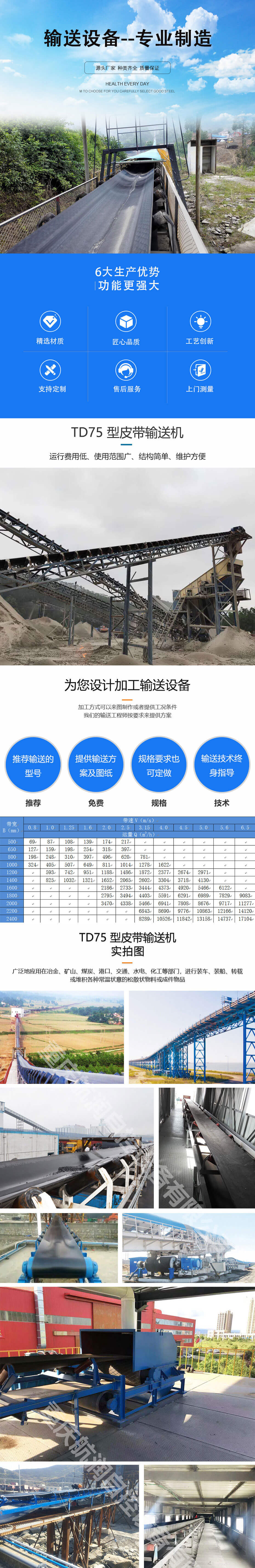 TD75型皮帶輸送機(jī)是一種輸送量大、運(yùn)行費(fèi)用低、使用范圍廣、結(jié)構(gòu)簡單、維護(hù)方便、成本低、通用性強(qiáng)等的輸送設(shè)備。由單機(jī)或多機(jī)組合成運(yùn)輸系統(tǒng)來輸送物料,可布置成水平和傾斜的形式。 廣泛應(yīng)用在冶金、礦山、煤炭、港口、交通、水電、化工等部門,進(jìn)行裝車、裝船、轉(zhuǎn)載或堆積各種常溫狀意的松散狀物料或成件物品。