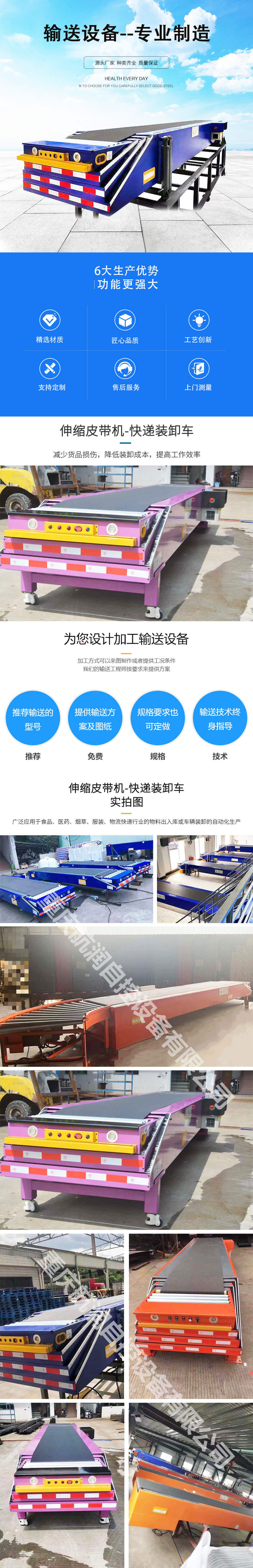 伸縮皮帶輸送機(jī)在長度方向上可以自由伸縮,雙向運(yùn)轉(zhuǎn)輸送物料,可與其它輸送設(shè)備和物料分揀系統(tǒng)配合使用,能縮短了人工往返搬運(yùn)物料的距離,還可以縮短貨物裝卸貨時(shí)間,降低勞動(dòng)強(qiáng)度,減少貨品損傷,降低裝卸成本,提高工作效率; 廣泛應(yīng)用于食品、醫(yī)藥、煙草、服裝、物流快遞行業(yè)的物料出入庫或車輛裝卸的自動(dòng)化生產(chǎn)。